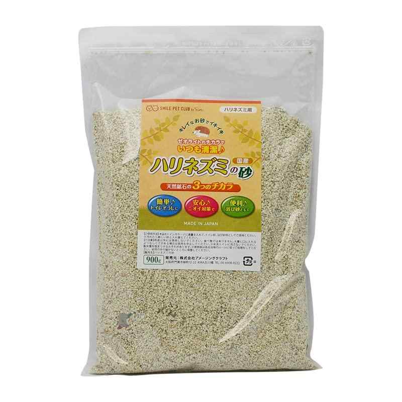 ハリネズミの砂 900g ゼオライト 浴び砂 トイレ砂 吸水 吸湿国産のゼオライトを使用。ハリネズミの浴び砂、トイレ砂として最適な粒の大きさ。臭いも吸着し、悪臭の発生を防ぎます。カビなども繁殖しにくい性質をもっています。
