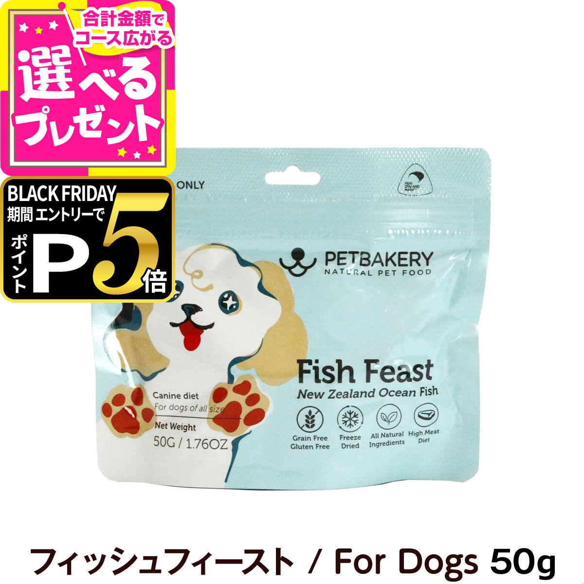 ペットベーカリー Fish Feast New Zealand Ocean Fish フィッシュフィースト/For Dogs 50g PETBAKERY 犬 ドッグ フリーズドライ フード 魚 フィッシュ 緑イ貝 高タンパク高品質 総合栄養食【通常2-5ヶ月の賞味期限で出荷】【D】