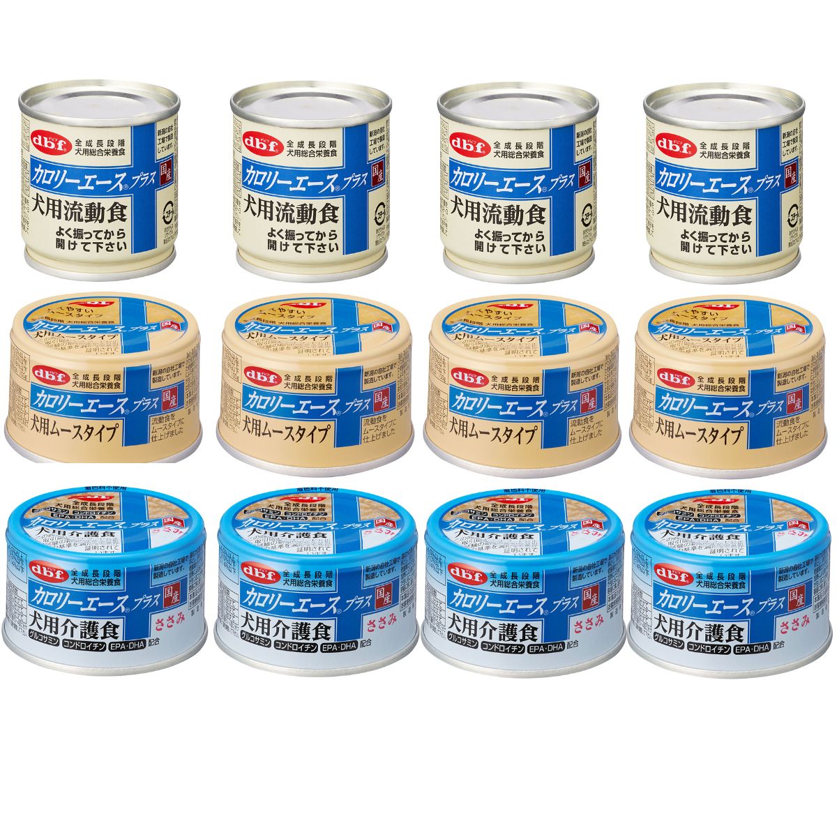 デビフ シニア 缶詰 犬 介護食 流動食 カロリーエース 3種 (流動食, ムースタイプ, 介護食ささみ) × 各4缶 シニア犬 犬の介護食
