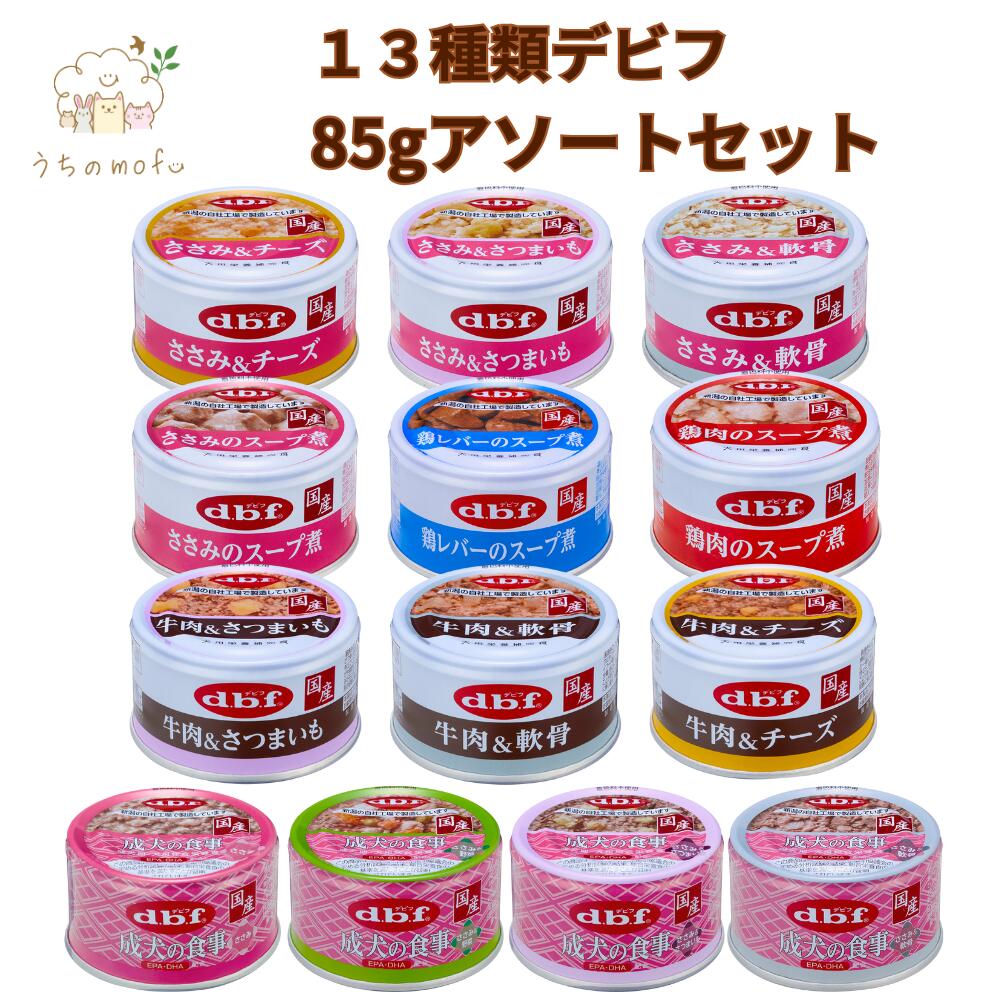 デビフ 缶詰 犬 ドッグフード 85g 全13種セット (85g缶粗挽きタイプシリーズ, 85g缶スープタイプシリーズ, 85g缶成犬の食事シリーズ) 半月分 ウェットフード