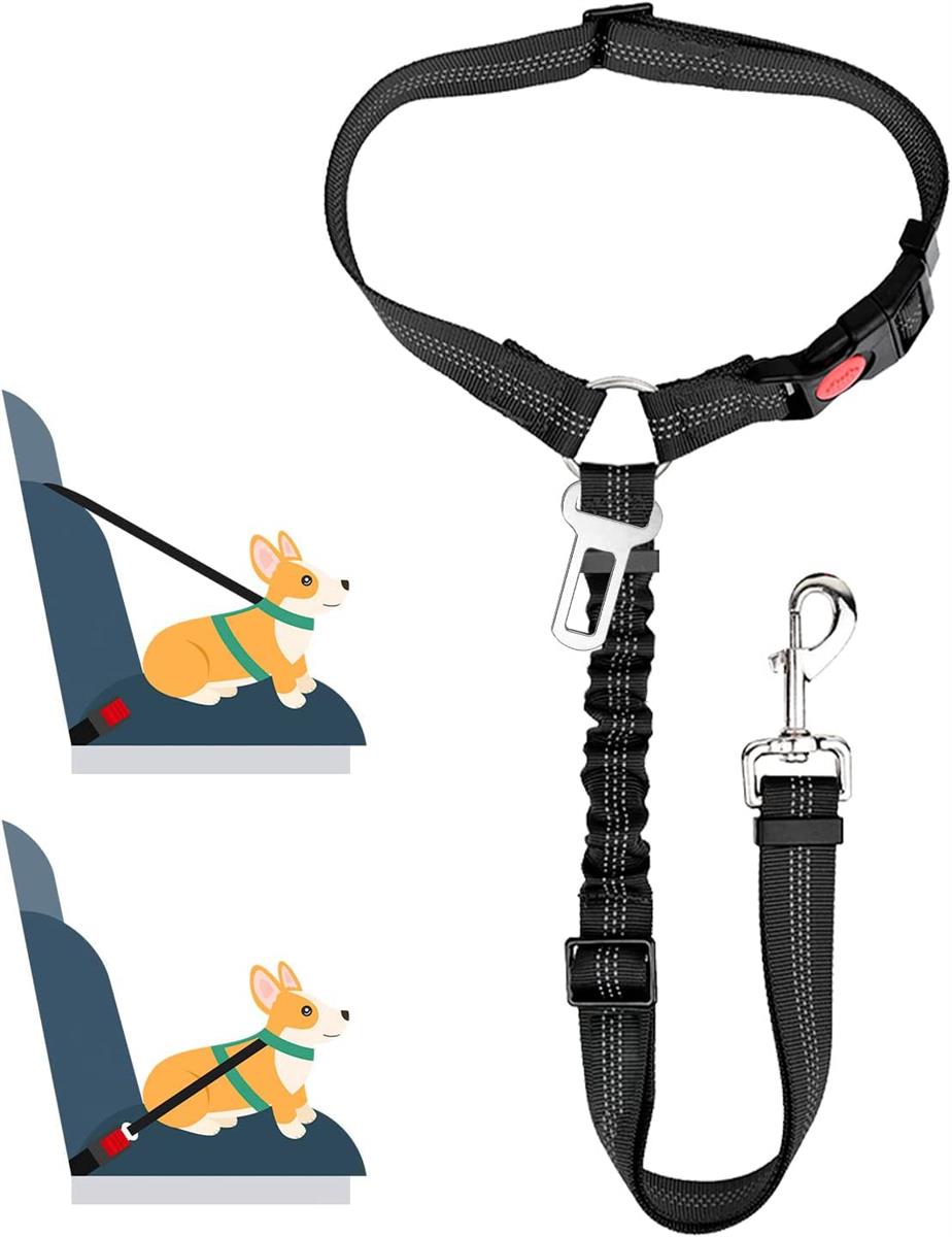 【Charming Decoration】 犬 シートベルト ペットシートベルト 車専用リード ドライブシートベルト 助手席 飛び出し防止 伸縮性あり 長さ調節可 (ブラック)