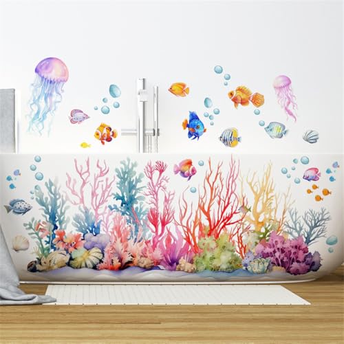 【送料無料】Condessacity ウォールステッカー 海 サンゴ クラゲ 貝 海の魚 水彩 立体壁紙シール はがせる おしゃれ 動物 ウォールすてっかー カフェ風 リビングルーム ベッドルーム ウォールペーパー 防水 wall sticker decoration