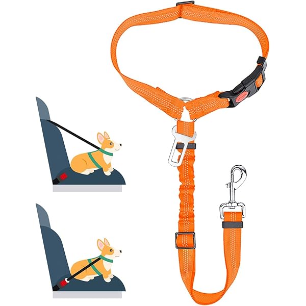 【Charming Decoration】 犬 シートベルト ペットシートベルト 車専用リード ドライブシートベルト 助手席 飛び出し防止 伸縮性あり 長さ調節可 (オレンジ)