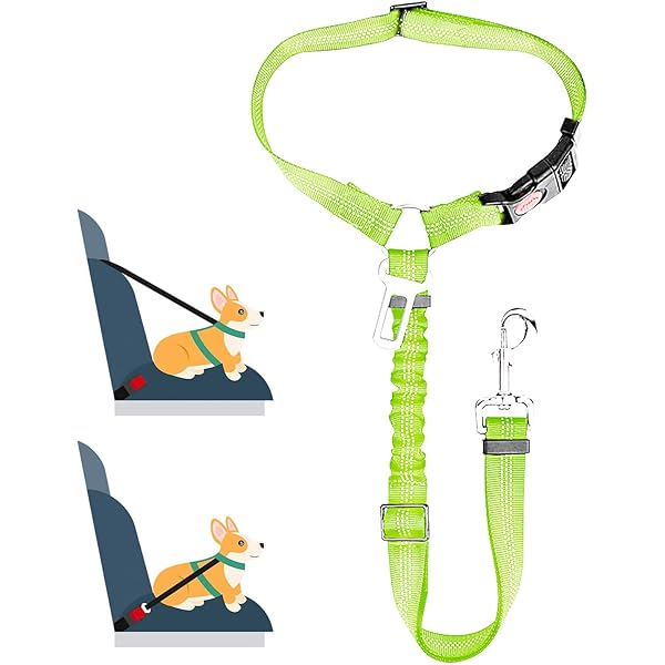 【Charming Decoration】 犬 シートベルト ペットシートベルト 車専用リード ドライブシートベルト 助手席 飛び出し防止 伸縮性あり 長さ調節可 (グリーン)