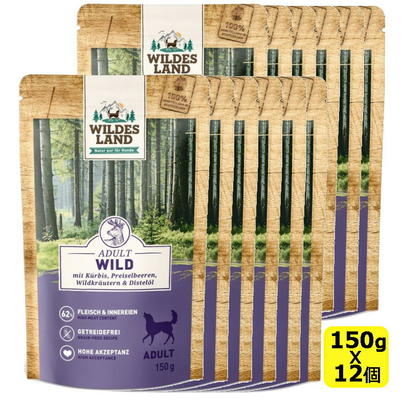 Wildes Landワイルドランド アダルト クラシック 鹿 パンプキン入り 150g×12個セット パウチ ドッグフード ウェットフード 正規品 SET【PU1111】