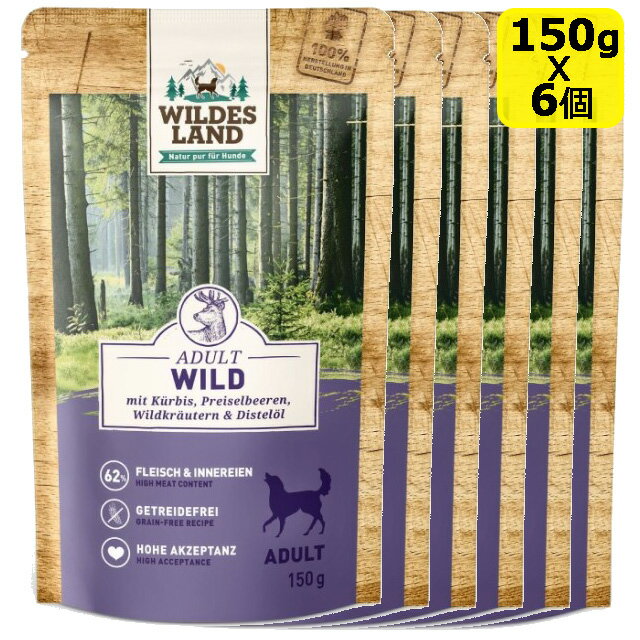 Wildes Landワイルドランド アダルト クラシック 鹿 パンプキン入り 150g×6個セット パウチ ドッグフード ウェットフード 正規品 SET【PU1111】