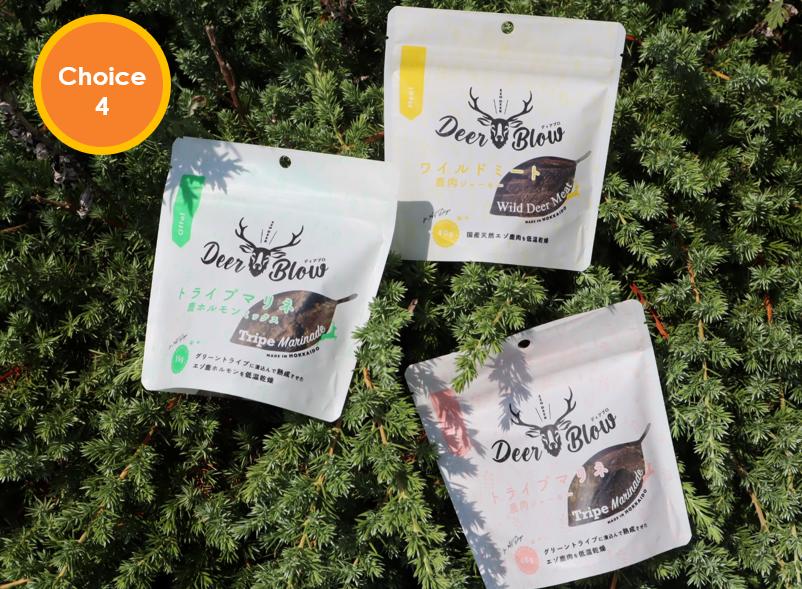 ディアブロ 選べる4個セット トライプマリネエゾ鹿ジャーキー40g・トライプマリネエゾ鹿ホルモンミックス35g・ワイルドミートエゾ鹿ジャーキー40g