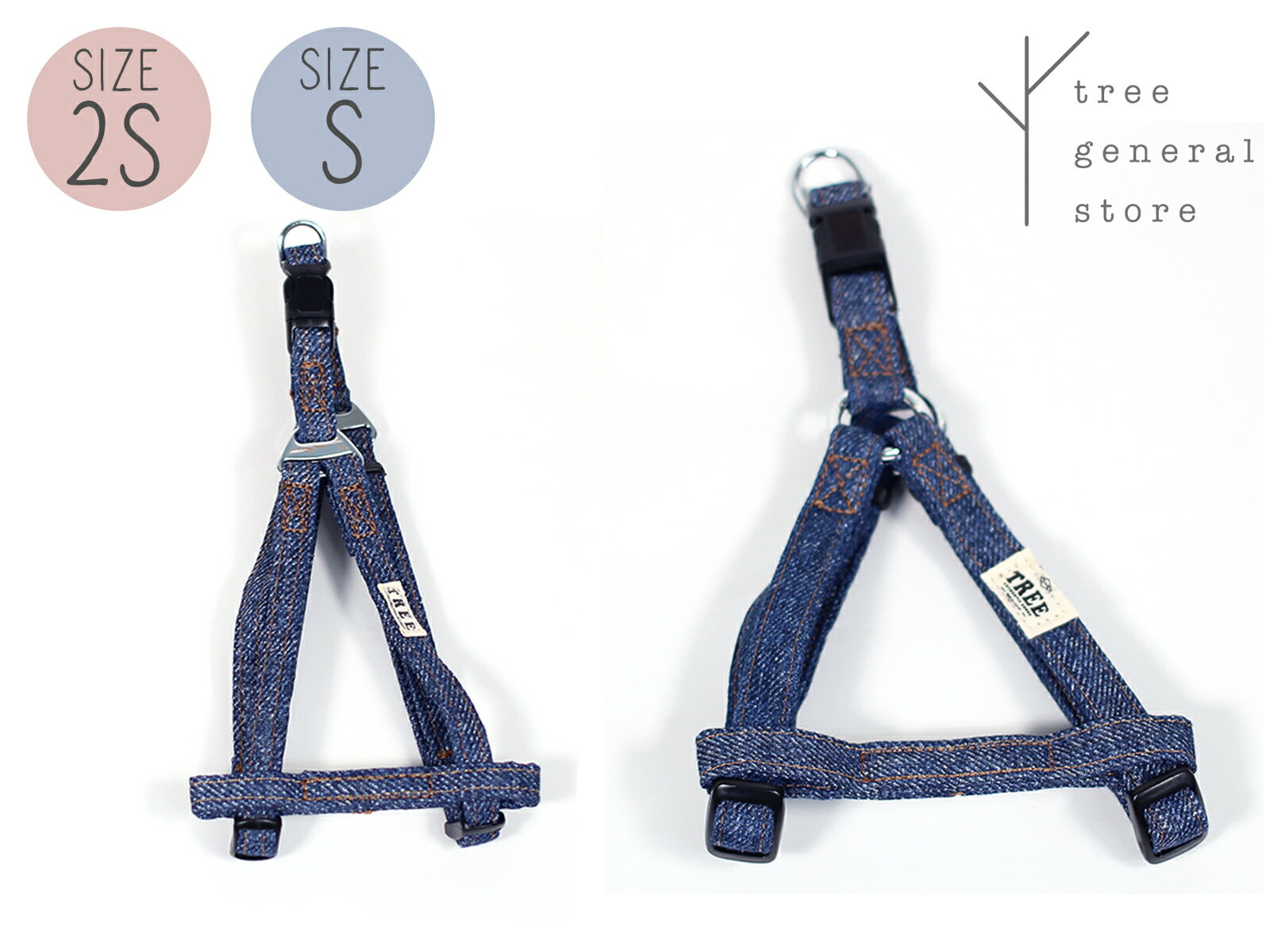 【クリックポスト送料無料】犬 ハーネス 胴輪 サイズ 小型犬 散歩用 お出掛け[DENIM/H/SS・S]デニム シンプル おしゃれ 可愛い 布 簡単 負担の少ない ペットグッズ リード ツリー tree おすすめ