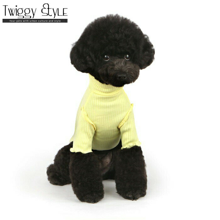 犬服 ドッグウェア 秋 冬 【サイズ交換OK】 シンプル タートルネック ウェーブタートルネックTシャツイエロー