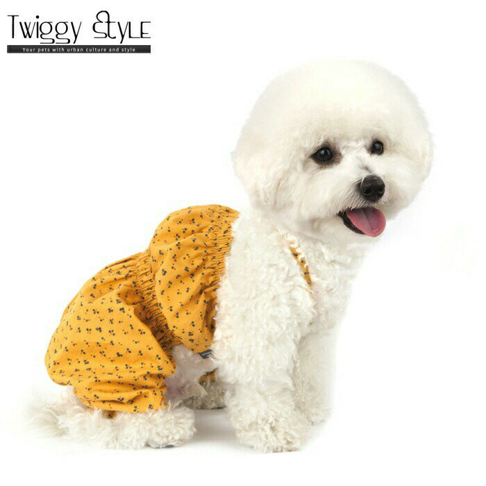 犬服 ドッグウェア 秋 冬 【サイズ交換OK】 シンプル つなぎ 花柄スモックオーバーオールイエロー