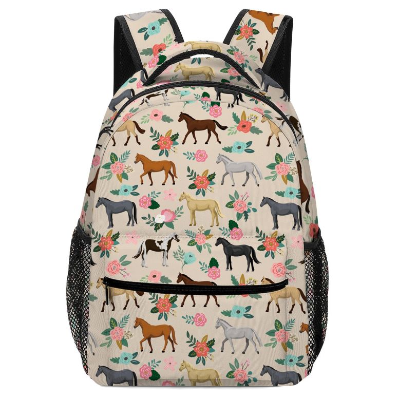 インコ 小鳥 バード トラベルキャリアー DOINBEE Horse Backpack for Girls Women, Colorful Horse and Floral Print Beige Bookbag for Kindergarten Elementary School Students, Cute Animal Shoulder Bags Lightweight Travel Laptop Daypack 【並行輸入品】