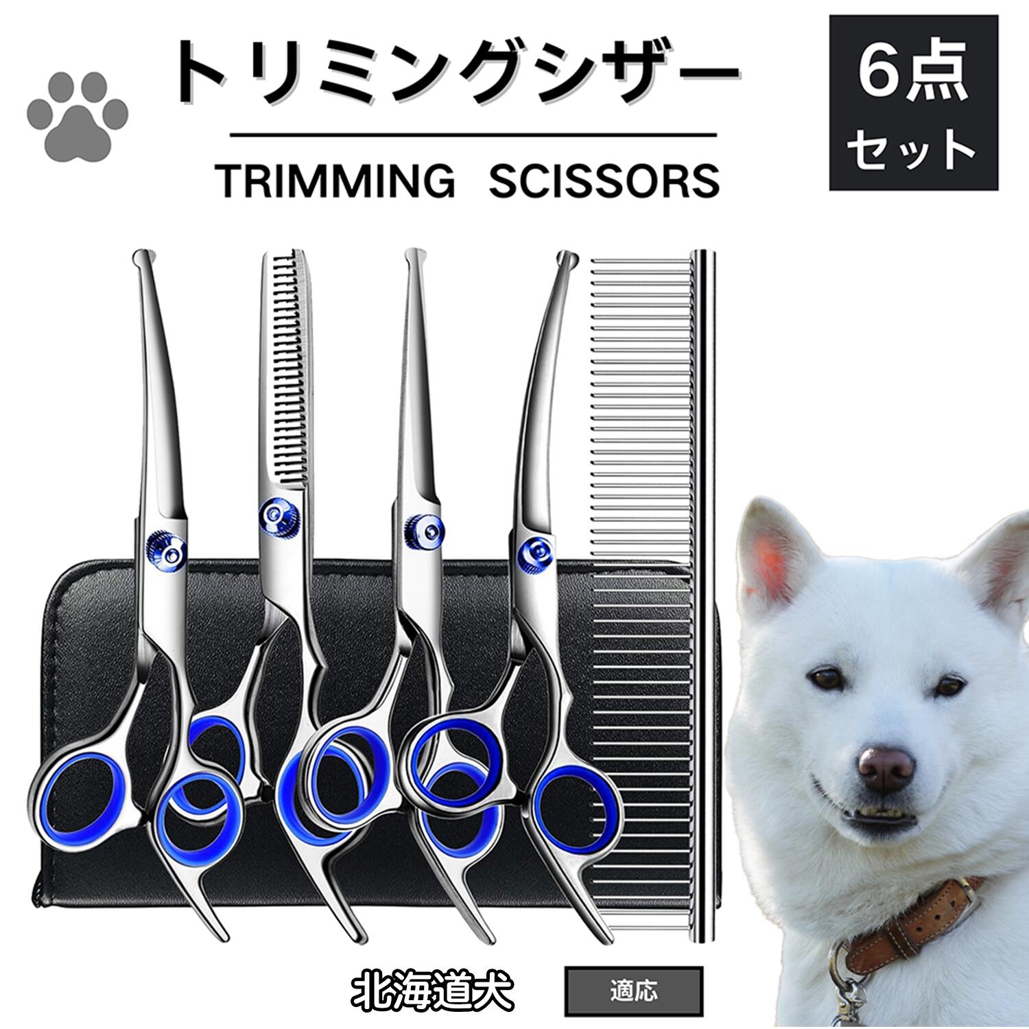 【5倍ポイント】北海道犬(Hokkaido Inu) トリミング シザー 犬 ハサミ はさみ トリミングシザー スキバサミ セニング カット 散髪 犬 猫 ペット 小型犬 中型 大型犬 トリマー コーム お手入れ 美容 安全性 初心者 6点セット