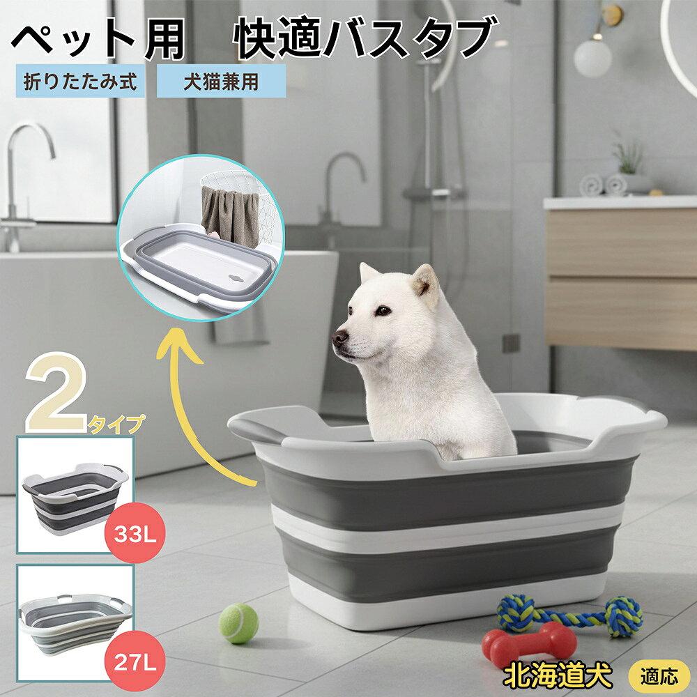 【5倍ポイント】北海道犬(Hokkaido Inu)折りたたみ式 ペットバスタブ コンパクト収納 水抜き栓付き 猫 犬 足洗い 足湯 ランドリーバケツ たらい代用 軽量 持ち運び便利 多用途 お手入れ簡単 アウトドアや旅行にも使えるペット用折り畳みバス