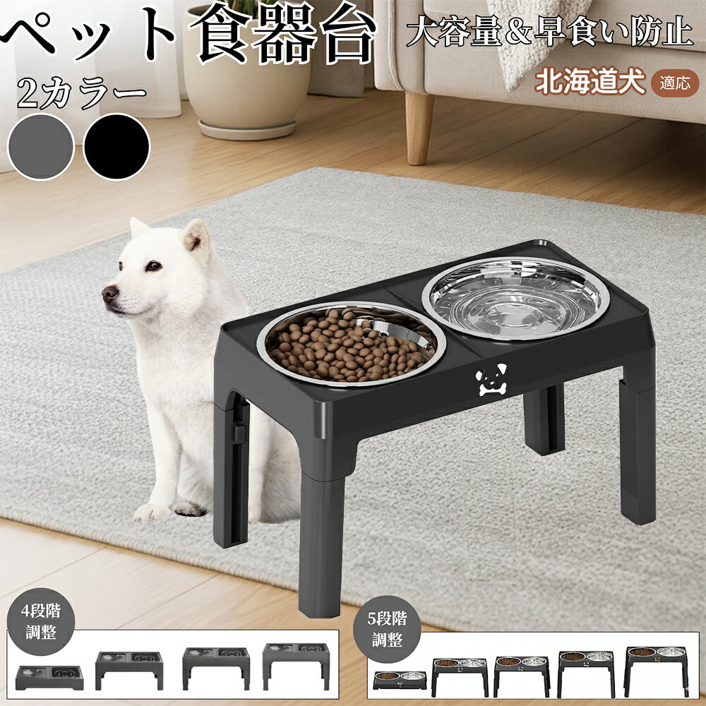 商品詳細 商品名 高さ調整のできるフードボウルスタンド 4段階調整タイプ/5段階調整タイプ 2タイプから選べる 適応ペット 北海道犬(Hokkaido Inu) 商品説明 愛犬の健康を考えた、2タイプから選べる、 最大5段階高さ調整ができるフードボウルスタンドです。 高めの位置で食事をすることで、首や背中への負担を軽減し、正しい姿勢をサポート。 ステンレス製の2ボウル構造で、ドライフードとお水を分けて清潔に使えます。 ボウルは取り外し可能で、簡単に洗えて衛生的。脚部には滑り止めゴム付きで安定感抜群です。 折りたたみ収納も可能。 猫、小型犬から大型犬まで対応し、成長に合わせて長く使える万能タイプです。 4段階調整タイプ カラー:ブラック、グレー 材質:ABS樹脂/PP樹脂 食器:ABS製のスローフードボウル+浮き型ウォーターボウル 高さ:4段階調整 (約85mm/約205mm/約250mm/約290mm) 重量:1520g 5段階調整タイプ カラー:ブラック、グレー 材質:ABS樹脂/PP樹脂/ステンレス 食器:ステンレス製のボウル2枚 高さ:5段階調整 (約85mm/約245mm/約280mm/約310mm/約345mm) 重量:1100g 用途 愛犬・愛猫の毎日の食事台として 水とフードを分けて与えるダブルボウルとして 成長期や高齢犬の首・背中ケアに 多頭飼いでの清潔な給餌管理に 室内用のペット食器台として お手入れ ステンレスボウルは取り外して丸洗い可能です。 台座部分は柔らかい布で汚れを拭き取ってください。 長期間使用しない場合は乾燥した場所で保管してください。 滑り止めゴム部分に汚れが溜まった場合は、中性洗剤で軽く洗い流してください。 注意事項 平らな場所でご使用ください。 熱湯消毒や食洗機の高温モードは変形の原因となるためお避けください。 組み立て・高さ調整の際は指を挟まないようご注意ください。 ステンレスボウルは落下衝撃により変形する場合があります。 ペットが激しく動く環境では転倒の恐れがあるため、安定を確認して使用してください。 生産国 中国 梱包や発送 本商品は 環境に配慮した簡易梱包 にてお届けいたします。 過剰包装を避け、商品をできるだけ早く・お手頃な価格でお届けするため、 輸送には影響がないよう丁寧に梱包しておりますのでご安心ください。 ※梱包の仕様は入荷時期により一部変更となる場合がございます。 関連キーワード 犬用食器台 ペット食器台 フードボウルスタンド 高さ調整食器 折りたたみ式食器台 ダブルボウル ステンレスボウル付き 犬用餌台 ペット給餌台 ペットウォーターボウル ドッグボウル キャットボウル 犬猫兼用食器 高さ調整可能 5段階高さ調整 首に優しい設計 姿勢サポート 関節ケア 健康維持サポート 小型犬 中型犬 大型犬対応 子犬 シニア犬 多頭飼い対応 安定構造 滑り止め脚付き 安心設計 軽量設計 折りたたみ収納 省スペース 家庭用ペット用品 屋外対応 旅行用 持ち運び便利 丸洗いOK 洗いやすいボウル 取り外し可能 清潔保てる 耐久性抜群 ステンレス素材 錆びにくい 丈夫なABS素材 防水防汚 機能性高い 食事サポート台 ペットケア用品 快適な食事姿勢を維持 健康的な給餌環境 人間工学設計 滑りにくい脚ゴム 安定性高い 長く使える構造 安全素材 BPAフリー ドッグケアグッズ ペットフードスタンド 食事トレー エサ皿 水皿 多機能テーブル 高品質ペット用品 高評価 人気商品