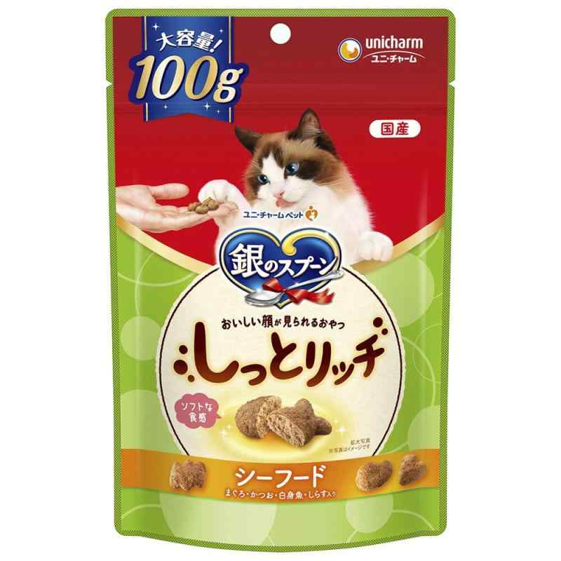ユニ・チャーム 銀のスプーン おいしい顔が見られるおやつ しっとリッチ シーフード 100gおいしい顔が見られるおやつ