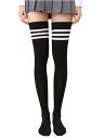 【送料無料】[Erikyson] レディース オーバーニーソックス ストッキング 太もも丈 80cm 綿 柔らか 美脚 通学 ロングソックス 通勤 可愛い 制服用 長さ80cm丈 綿混 色選べる ハイソックス 男性用 女装 男の娘 JK (black-white)