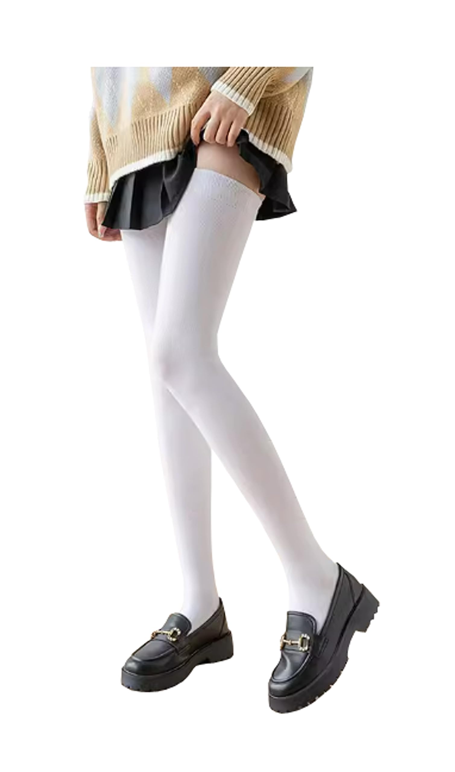 【送料無料】[Erikyson] レディース オーバーニーソックス ストッキング 太もも丈 80cm 綿 柔らか 美脚 通学 ロングソックス 通勤 可愛い 制服用 長さ80cm丈 綿混 色選べる ハイソックス 男性用 女装 男の娘 JK (white)