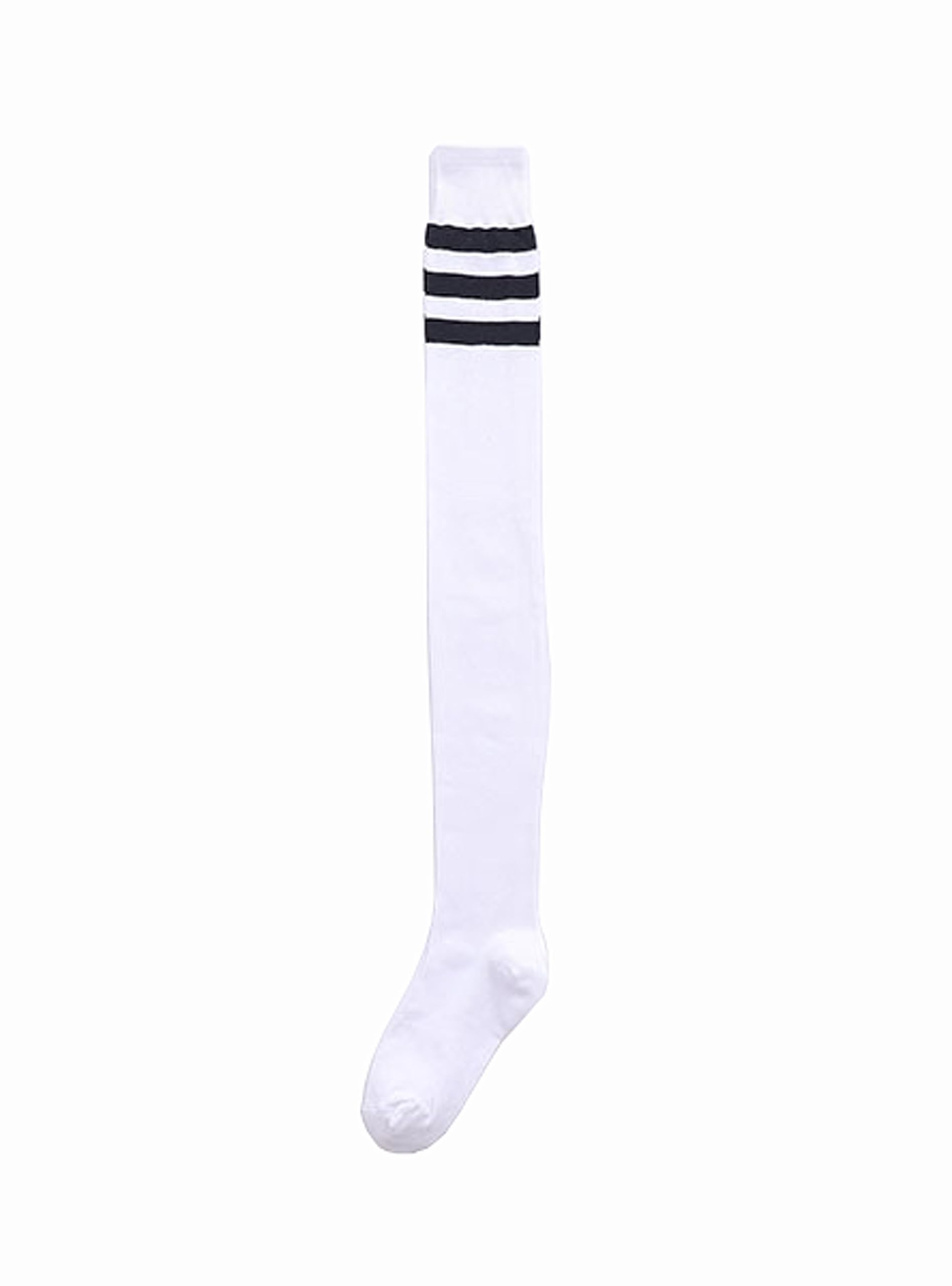 【送料無料】[Erikyson] レディース オーバーニーソックス ストッキング 太もも丈 80cm 綿 柔らか 美脚 通学 ロングソックス 通勤 可愛い 制服用 長さ80cm丈 綿混 色選べる ハイソックス 男性用 女装 男の娘 JK (white-black)