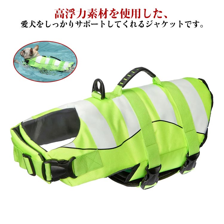 犬用 ライフジャケット 浮き輪 小型犬 中型犬 大型犬 水遊び 水泳 ライフベスト フローティングベスト 海 川 救命胴衣 反射ライン 安心 事故防止 安全 リハビリ 犬用品 ペット用品 グリーン 【送料無料】