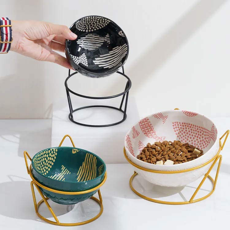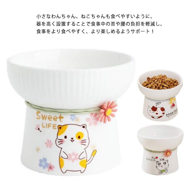 犬 猫食器 食器スタンド 食器台 フードボウル スタンド フード食器 脚付 フードボウル 餌入れ 北欧 グッズ 食器 給水器 給餌器 食器 陶器 プレゼント おしゃれ えさ 皿 シングル 食べやすい 滑り止め 猫柄 高さ 首 腰