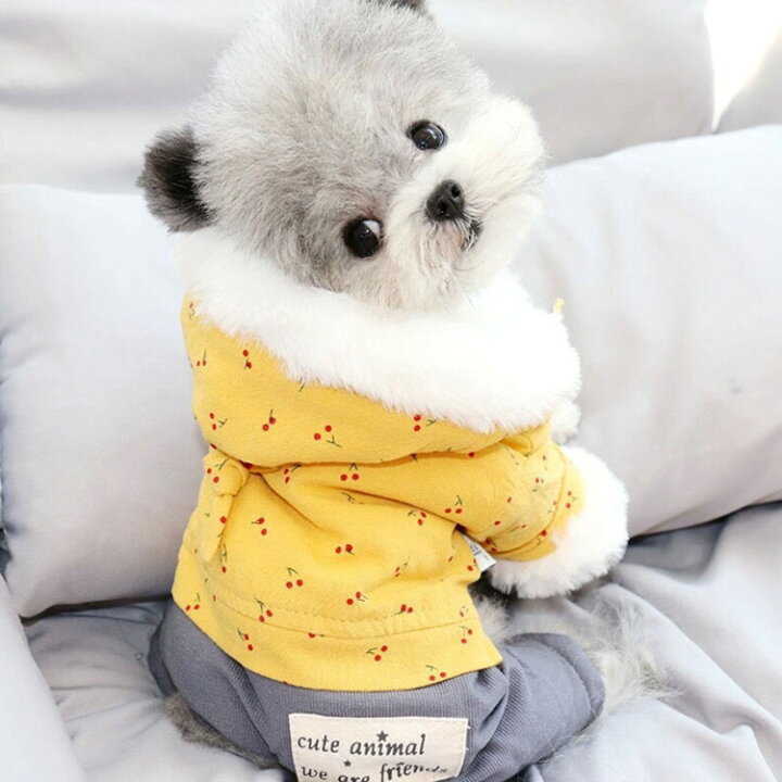 犬服 ドッグウェア 裏起毛 ジャケット チェリー柄 ロンパース 冬 秋冬 起毛 ボア 小型犬 中型犬 モコモコ パーカー メス オス 洋服 暖かい 猫 犬 服 アウター かわいい おしゃれ 抜け毛対策 防寒 保温
