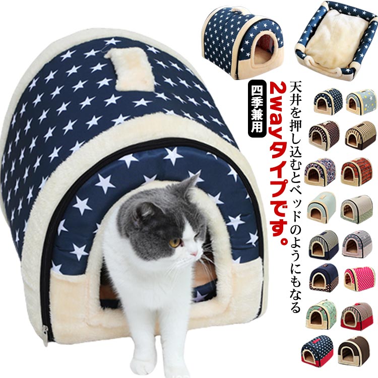 ペットベッド ドーム型 2way 犬用 猫用 ベッド ふわふわ クッション ペットハウス ペットソファ 猫 犬 小屋 ハウス テント 寝袋 寝床 おしゃれ 隠れハウス 小型犬 中型犬 ベッド 犬ハウス 猫ハウス オールシーズン 四季兼用 折りたたみ 洗える 【送無】