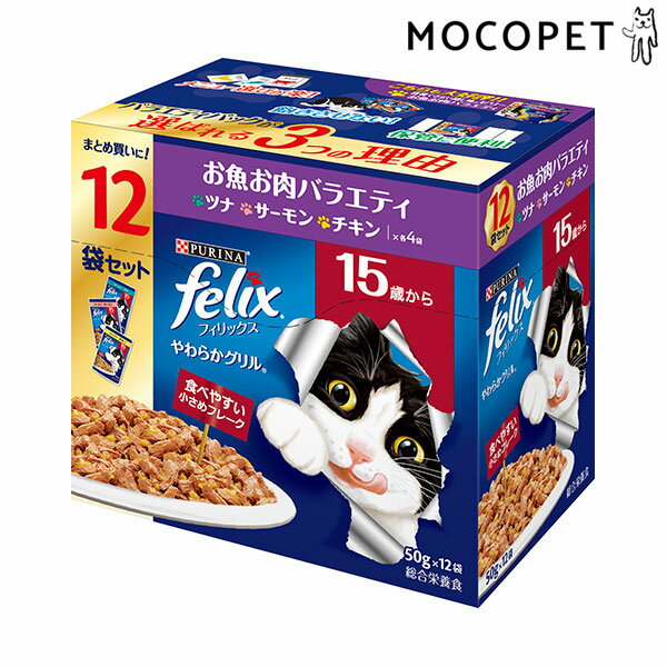 【LINE追加で500円OFF!】[フィリックス]felix パウチ やわらかグリル 15歳から お魚お肉バラエティ 50g×12袋 グロッサリーフード ウェット 高齢猫用 猫 4902201213370 #w-167937-00-00
