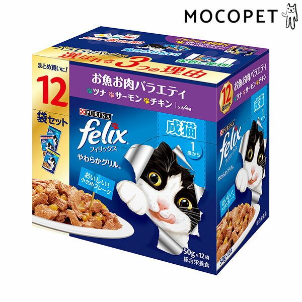 【LINE追加で500円OFF!】[フィリックス]felix パウチ やわらかグリル 成猫 お魚お肉バラエティ 50g×12袋 グロッサリーフード ウェット 成猫用 猫 4902201213424 #w-167941-00-00
