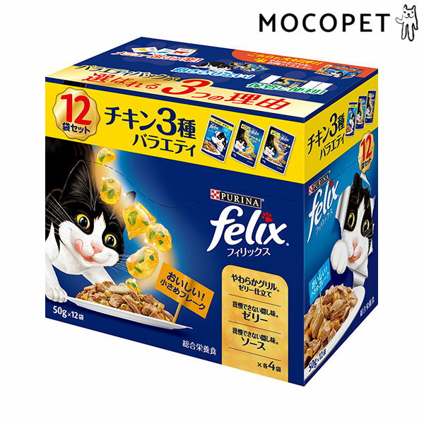 【LINE追加で500円OFF!】[フィリックス]felix パウチ 成猫 チキン3種バラエティ 50g×12袋 グロッサリーフード ウェット 成猫用 猫 4902201214711 #w-167977-00-00