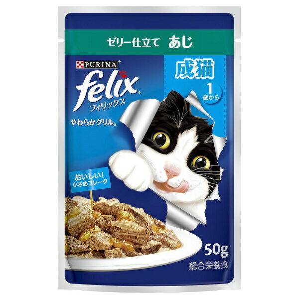 キャットフード 猫 パウチ【50g/1袋】12袋 48袋 セット やわらかグリル あじ 成猫 ゼリー仕立て ウェットフードフィリックスパウチ うまみたっぷり ゼリー状 【猫 誕生日】【同梱A】shippotv