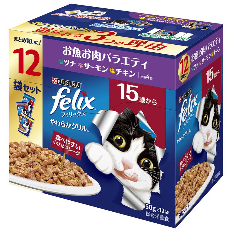 ネスレ日本 felix(フィリックス)やわらかグリル 成猫 お肉バラエティ 50g×12袋入