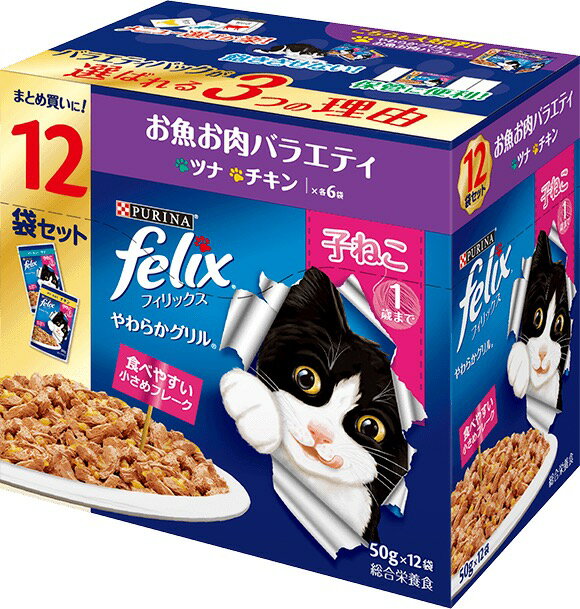 ネスレ日本 フィリックス子ねこお魚お肉バラエティ600g(50g×12袋) ペット | フィリックス Felix 猫 子猫 キトン ウェット パウチ お魚 お肉 バラエティ 600g 50g 12袋 ペットフード