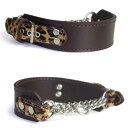 ウィペット系用革ハーフチョーク:Wip 4cm Type チョーカー GB (茶+ハラコヒョウ柄)