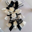 ペット用 犬猫兼用 首輪 スタイ バンダナ ロリータ風 カメリア コサージュ ドールデザイン フリル パール装飾 上品 エレガント かわいい おしゃれ お出かけ 散歩 記念撮影 小型犬 中型犬 大型犬 ナイロン製 ピンク ブラック グリーン