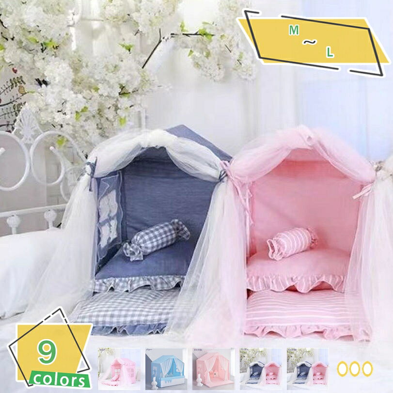 1600円OFFクーポン ペット用テント 犬小屋 屋根付きベッド 猫 ペットハウス キャット ベッド マット 室内用 小型犬 犬猫兼用 通気性 室内 屋外 通気性 日焼け止め 犬小屋 安眠 蚊帳 折り畳み式 防風 涼しい 暑さ対策 ネコベッド RaogtCYU