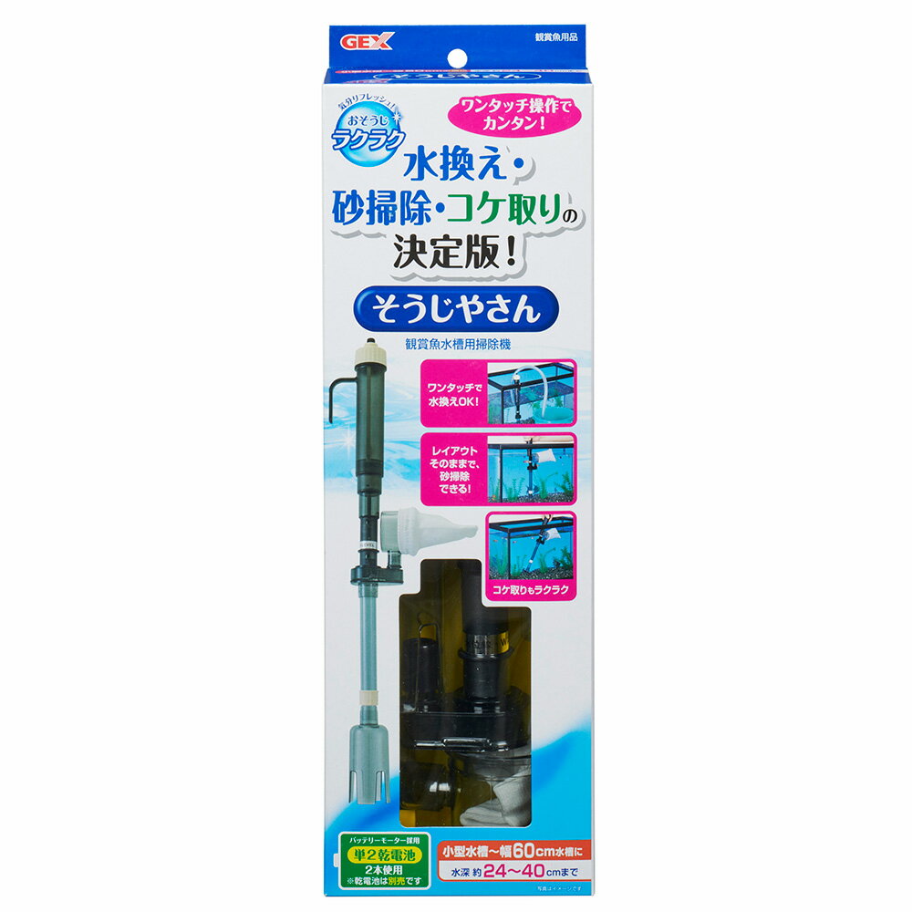 メーカー:ジェックス品番:20082水換え・砂掃除・コケ取りの決定版!GEX おそうじラクラク そうじやさん対象小型水槽〜幅60cm水槽(水深約24〜40cmまで)特長●スイッチひとつでカンタンに水換えできる水槽用掃除機です。●単2乾電池2本で動作します。(電池別売) ●砂掃除が手軽でスピーディーに行えます。 ●落ちにくいコケ汚れも、ガラスにキズを付けることなく取り除けます。数量1本サイズ(約)組み立て時:幅9.5×長さ62cm(最大)材質本体:PS、PVC、ABSネット:ナイロン生産国中国ご使用方法【水換えに使用する場合】●水道ホース用アタッチメントを取り付け、フックハンガーを水槽に掛けて使用してください。【砂掃除に使用する場合】●ネットを取り付け、砂に吸じん口を差し込み、ゴミを吸い込んでください。【コケ取りに使用する場合】●吸じん口をガラスクリーナー(コケ落とし)と交換し、コケ汚れを取り除いてください。ご注意※本製品は観賞魚飼育専用です。他の目的には使用しないでください。お問い合わせについて商品の不明点につきましては、下記にお問い合わせください。ジェックスサービスセンターTEL:072−966−0054 … GEX おそうじラクラク そうじやさん 4972547036537 20190228 GBNM ジェックス らくらく 掃除 クリーナー 電動 ワンタッチ 水替え 水換え みずかえ 砂掃除 メンテナンス 楽々 観賞魚水槽用掃除機 掃除機 アクアリウム opa2_delete コケ取り 苔とり 苔取り コケとり y19m02