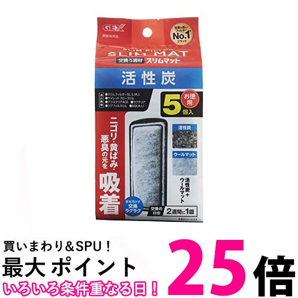 GEX AQUA FILTER 活性炭スリムマット5個入 交換ろ過材 スリムフィルター サイレントフロースリム 送料無料 【SK02012】