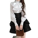 【送料無料】[AOTYP] ゴスロリ コスプレ 黒 3点セット 半袖シャツ ケーキ スカート リボン ゴシックパンク系 ミニ 黒ロリ 病み コスチューム 地雷系 王子様 ゴシック 森ガール 貴族風 制服 アニメ 文化祭 色:ホワイト/ブラック2、サイズ:L