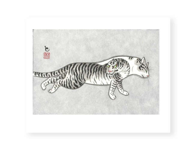 MONMON CATS Grey Striped Tiger Cat Print モンモンキャット 絵 アートパネル ポスター 壁掛け 絵画 猫 刺青 イレズミ tattoo タトゥー ねこ ネコ アメリカ カリフォルニア