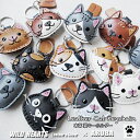 本革 猫のキーホルダーネコ ねこ 猫 飾り フィギュア 小物 雑貨 12種 三毛猫 シロ クロ キーホルダー キーリング キーチャーム グッズ 革 牛革 革小物 レザー かわいい プレゼント WILD HEARTS Leather&Silver ID (kh693k16)za001