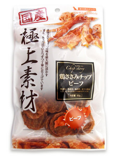 [国産・無添加・無着色]Chip story[チップストーリー]鶏ささみチップ(ビーフ)60g ※セール期間中、直前直後はお届けまでに大変お時間がかかります。