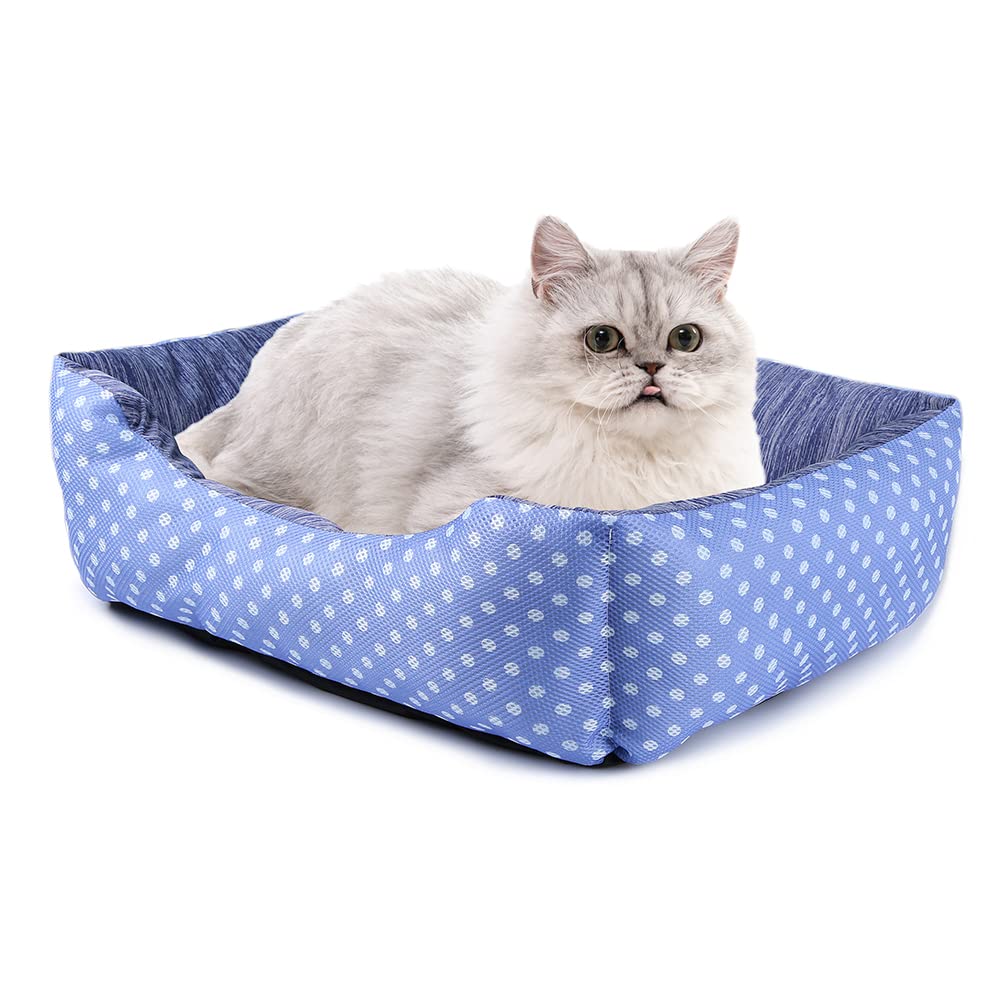 【送料無料】ペットベッド ペットソファー ペットクッション マット 犬 猫 スクエア型 洗える 冷感 ひんやり メッシュ 通気性いい ふわふわ 夏用 色:ドット、サイズ:外径約:50x40x13cm