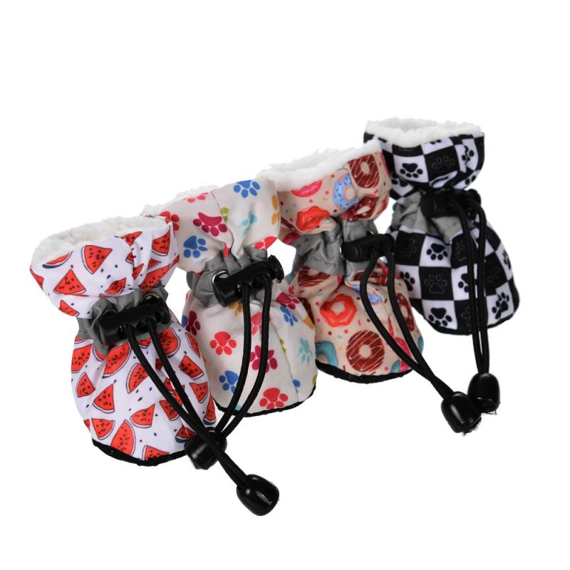 犬用シューズ 秋冬モデル ペット用靴下 あったか裏起毛 反射素材 滑り止め ドッグソックス カジュアル オリーブ柄 ドーナツ柄 フットプリント柄
