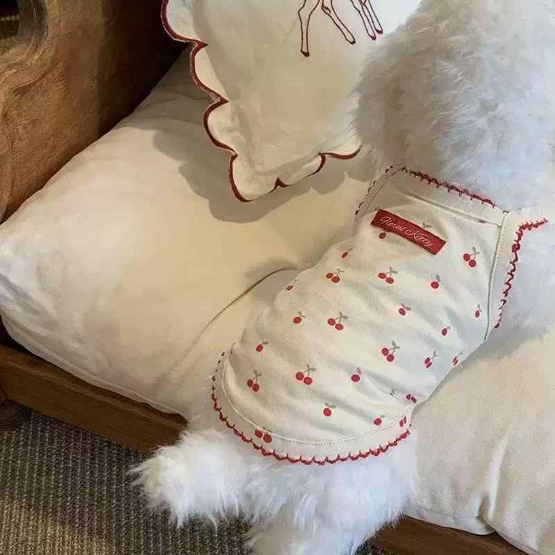 ペット用スカート 小型犬用 猫用 春夏 桜桃柄 吊りスカート ワンピース チュール フリル かわいい ポリエステル ピンク系