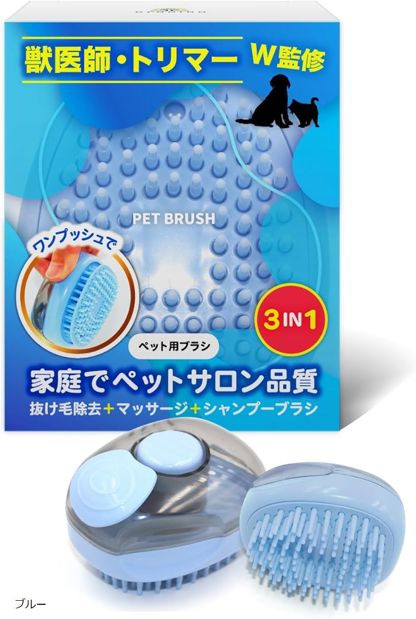 【楽天ランキング1位入賞】猫 ブラシ 犬 獣医師/トリマー/監修 ペット 用 シャンプーブラシ ブルー