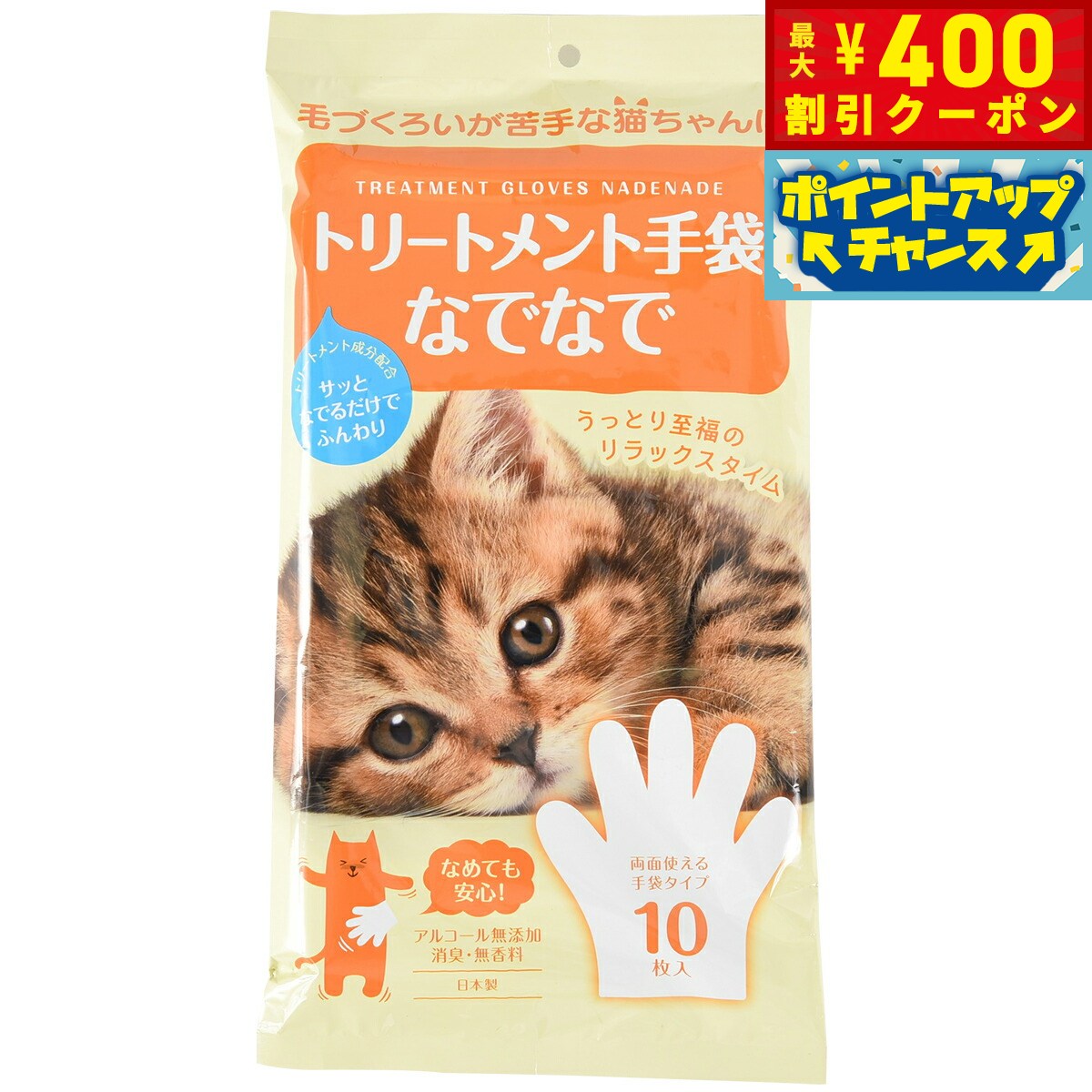 被毛が細い猫ちゃんはブラッシング時によく毛切れを起こします。トリートメント手袋は従来のウェット手袋と比べてトリートメント性能が1.6倍UPしました。ブラッシング前に拭いておくと毛切れを防止しフワフワに仕上がります。ブラッシング、シャンプーが嫌いな猫ちゃんにおすすめです。ノンアルコールでなめても安心。植物由来消臭成分配合でにおいスッキリ。無香料タイプ。商品名本田洋行 トリートメント手袋なでなでブランドHONDAYOKO材質不織布大きさ約24×25cm生産国日本 【ネコちゃんうっとり!トリートメント手袋】これ1枚でしっかりトリートメント。『手袋型』のウェットタオルなので拭きやすく、ネコちゃんもマッサージされている気分で嫌がりません。ノンアルコールでなめても安心。植物由来消臭成分配合でにおいスッキリ。シャンプーはねこちゃんの負担になりますが、この手袋でケアすれば飼い主さんとともに負担なく簡単にケアできます。シャンプーができない子猫や老猫にもお勧めです。【トリートメント手袋なでなでとは】従来のシートでは拭きにくかった細かいところの汚れもしっかりと拭きとることができます。ブラッシング前に拭くことで毛切れを防ぎふわっと仕上がります。シャンプーを嫌がるネコちゃんもマッサージ気分で嫌がらないため汚れも綺麗に拭き取れます。植物由来の消臭成分でニオイのもとの分子を取り込み消臭。トリートメント効果で乾くとサラサラでブラッシングもスムーズ。もちろんノンアルコール、ノンパラベンでなめても安心。左右対称だから両面無駄なく使えます。【トリートメント手袋なでなでの使用方法】からだ:全身をなでなでしながら拭いてあげましょう。マッサージ効果でリラックス。前から後ろへ手のひらでさするように拭きましょう。目の周り:目元を指先でなぞるように拭いてあげましょう。タオルシートで拭くように、小さく折りたたむ必要もありません。目の前をシートがガサガザ動かないので、ネコちゃんも安心です。耳:耳の際や、やさしく耳をめくって指先で優しく拭いてあげましょう。タオルシートでは拭きづらい部分もやさしく「なでなで」して拭いてあげられます。【トリートメント手袋なでなではこんな時におすすめです!】・高齢の猫ちゃんに:被毛のパサつきにはトリートメントとブラッシングが有効です。・毛づくろいが苦手な猫ちゃんに:脇の下、背中、お尻まわりは毛づくろいが難しい場所です。定期的にケアしてあげましょう。・抜け毛が多い猫ちゃんに:長毛・短毛にかかわらず、抜けた毛は舞い上がりやすいもの。事前にしっとりさせることが大切です。・毛玉吐きが多い猫ちゃんに:特に長毛種の場合、ブラッシングをして無駄な被毛を取り除き、猫が飲み込む量を減らしましょう。対象ペット:猫メーカー名株式会社 本田洋行本田洋行 トリートメント手袋なでなで被毛が細い猫ちゃんはブラッシング時によく毛切れを起こします。トリートメント手袋は従来のウェット手袋と比べてトリートメント性能が1.6倍UPしました。ブラッシング前に拭いておくと毛切れを防止しフワフワに仕上がります。ブラッシング、シャンプーが嫌いな猫ちゃんにおすすめです。ノンアルコールでなめても安心。植物由来消臭成分配合でにおいスッキリ。無香料タイプ。