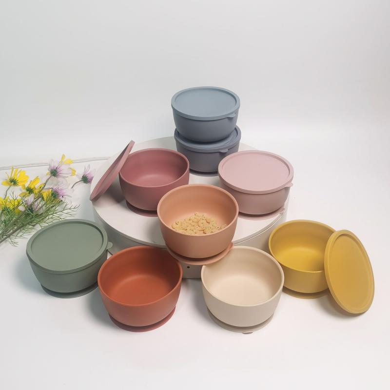 ベビー食器 キッズ 子供 シリコン製 フタ付き 吸盤ボウル 滑り止め 離乳食 トレーニング お食事 3ヶ月から シンプル かわいい モランディカラー 衛生的 持ち運び