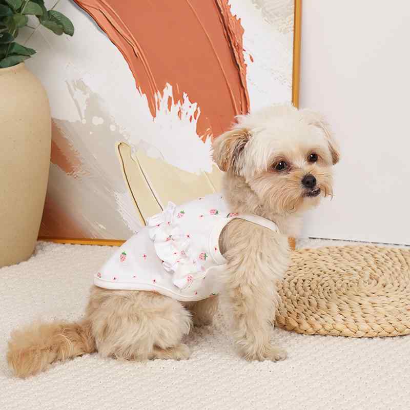 ドッグウェア 女の子 ワンピース 薄手 軽量 通気性 快適 綿 コットン 花柄 総柄 いちご柄 フラミンゴ柄 かわいい プリンセス風 お散歩 お出かけ 普段使い ペット服