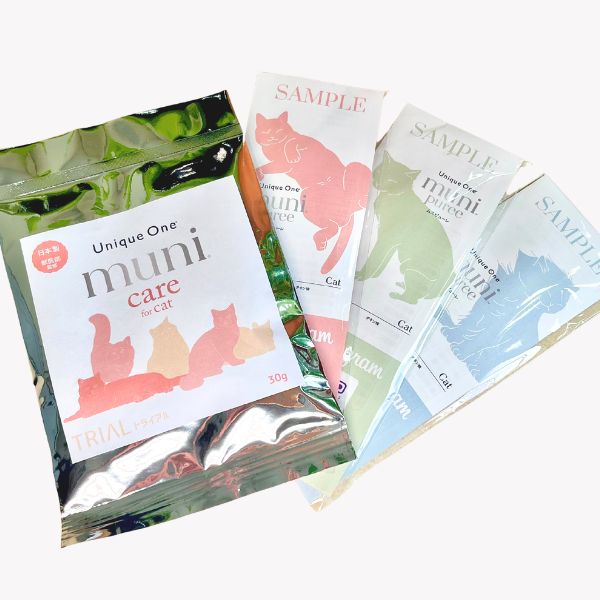 UniqueOne猫用サンプルセット(猫ドライ30g+munipuree腸内フローラ12g+munipureeヘアー&スキンケア12g+munipuree下部尿路)