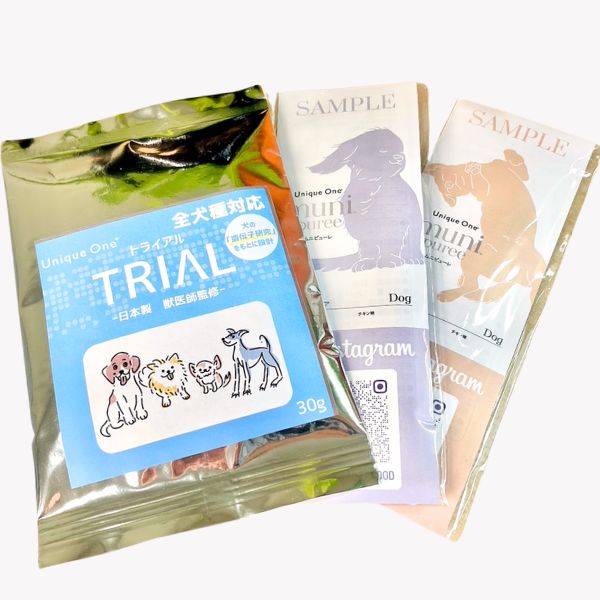 UniqueOne犬用サンプルセット(全犬種対応30g+munipuree腸内フローラ12g+munipureeヘアー&スキンケア12g)
